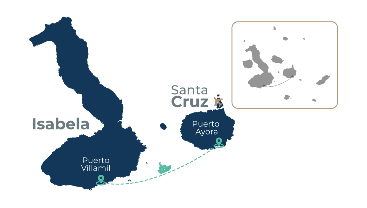 No hay ruta directa entre San Cristóbal e Isabela; se debe hacer transbordo en Santa Cruz