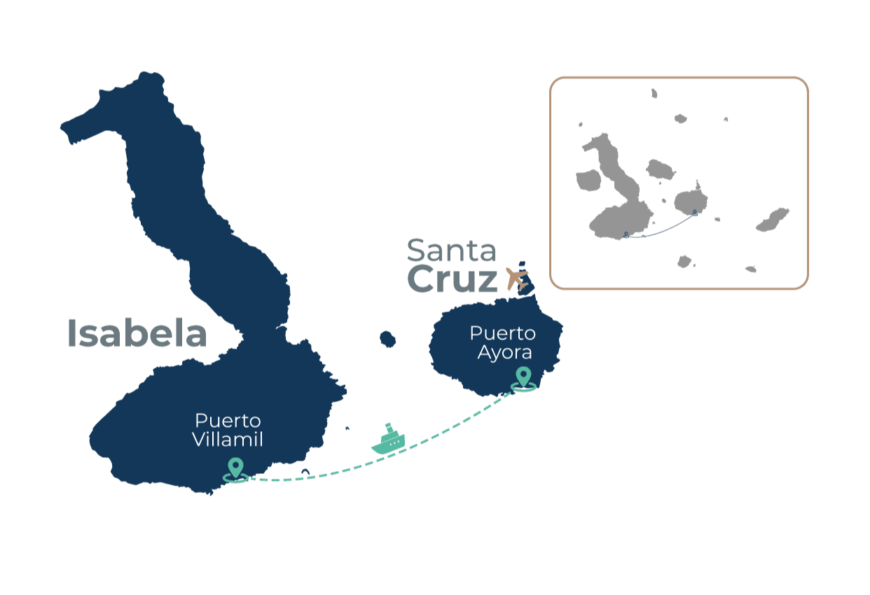 No hay ruta directa entre San Cristóbal e Isabela; se debe hacer transbordo en Santa Cruz